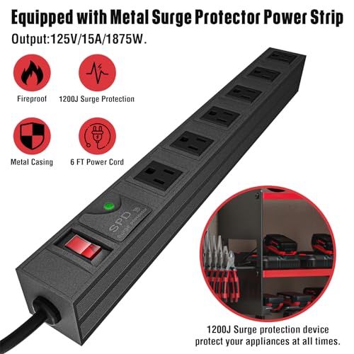 The power tool storage rack features a surge protection power strip allowing convenient charging of tools directly on the shelf. Its higher and wider design accommodates various tools with adequate spacing between slots. Constructed from industrial-grade steel, it supports up to 280 lbs, ensuring durability and stability. The black powder coating resists rust, extending the rack’s lifespan. This tool hanger makes an excellent gift for occasions like Father’s Day or birthdays, reflecting quality craftsmanship by YYR.