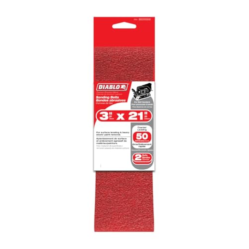 Diablo Sanding Belt for Belt Sanders in Wood, Metal and Plastics – 3″ x 21″, 50-Grit, Coarse, Zirconium Blend, 2-Pack – DCB321050S02G