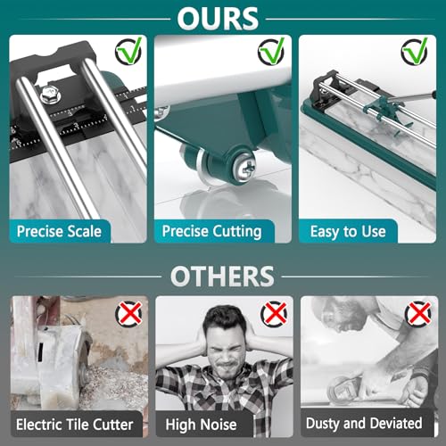 The Professional Tile Cutter stands out for its durable premium alloy material, offering excellent toughness for various cutting projects. With a minimum cutting width of 1.38″ and thickness capacity of 0.24″ to 0.60″, it effectively handles ceramic and porcelain tiles, ensuring clean, precise cuts. Its double rails design enhances stability and accuracy, minimizing errors. An ergonomically curved handle ensures comfortable operation, reducing hand fatigue. Featuring a tungsten carbide cutting wheel, this manual cutter operates quietly and cleanly, making it a reliable choice for DIY and professional use. The product comes easy to carry with no installation required and includes great customer support.